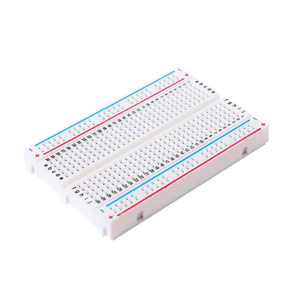 لوحة تجارب (Breadboard) متوسطة الحجم مثالية لمعظم المشاريع التعليمية والنماذج الأولية. تتيح لك بناء وتجربة الدوائر الإلكترونية بسرعة وسهولة دون الحاجة إلى لحام.